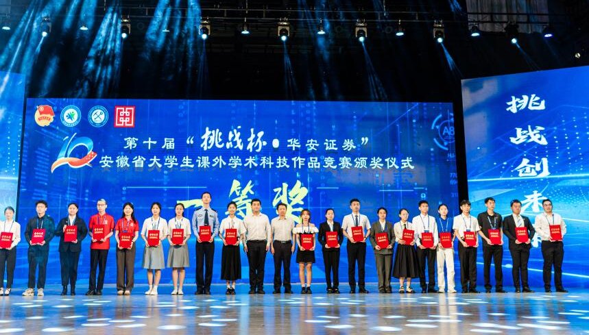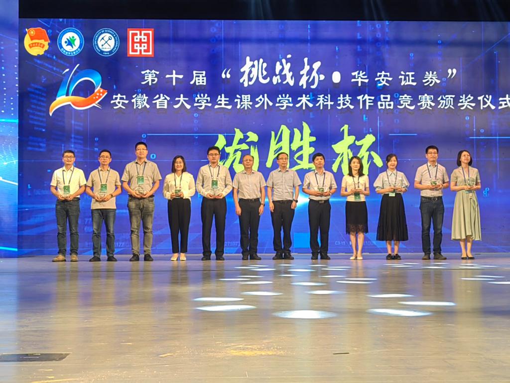 挑战青春,科创未来。6月11日下午,由团省委、省教育厅、省科协、省社科院、省学联共同举办的第十届“挑战杯 华安证券”安徽省大学生课外学术科技作品竞赛在淮南艺术文化中心落下帷幕。bat365官网获得一等奖2项,二等奖8项,并在该项赛事中荣膺“优胜杯”。
