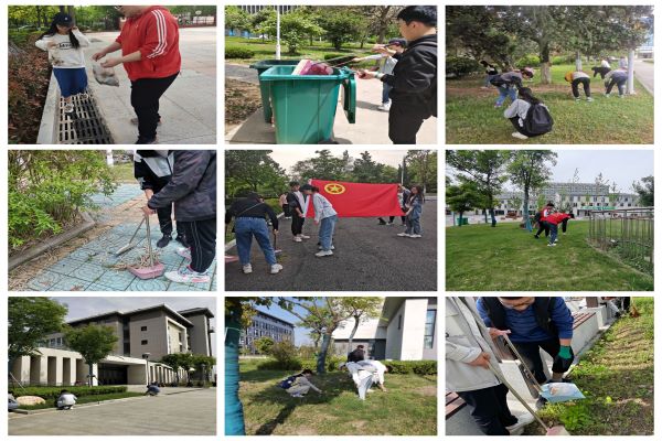 4月28日下午,bat365官网2021年认领“青年林”的26个团支部开展集中行动,分赴各自责任区开展清扫大行动,将青春的热情投入到对校园的责任和爱护中来,让团旗在“青年林”中高高飘扬。