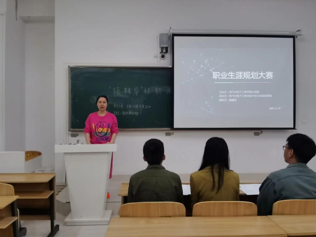比赛开始后,主持人首先宣读比赛流程及评分标准,参赛选手依次上台通过PPT来展示他们的职业生涯规划。他们结合自身的优缺点,对自己的职业进行合理选择和规划。参赛选手介绍完后,评委们根据参赛选手的表现,逐一进行提问,并给予相应建议。评委们指出,大学生在制定职业规划时,应重点考虑四个时期,其一是在校期间,完成学业,积累能力;其二是毕业之初,勇于试错,积极择业;其三是奋斗时期,踏实努力,稳步前进;其四是成熟时期,回报社会,发挥价值。最终,丁亚平获得一等奖,方嘉靖、刘雯洁、王啊康获二等奖,余雪茜、曹城、黎欣雨获三等奖。建电201班、光电203班获得优秀组织奖。